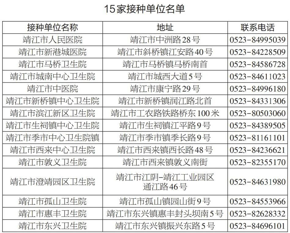 近期靖江市卫健委发布消息:靖江市已全面开放新冠疫苗免费接种!