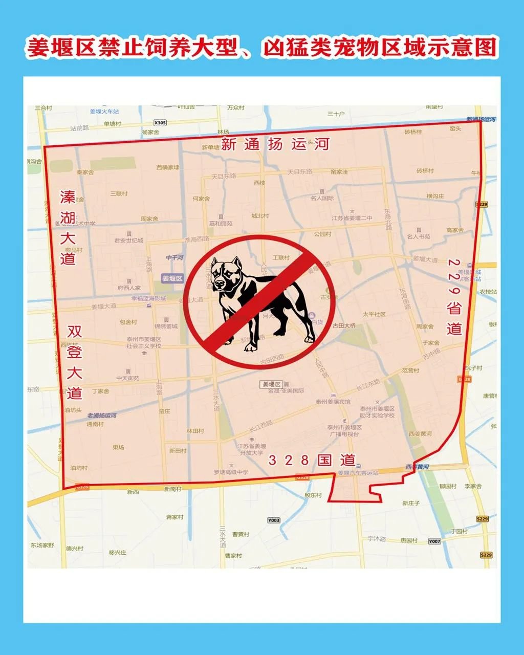 泰州市区大型凶猛类宠物禁养区域图 泰州市禁养犬种