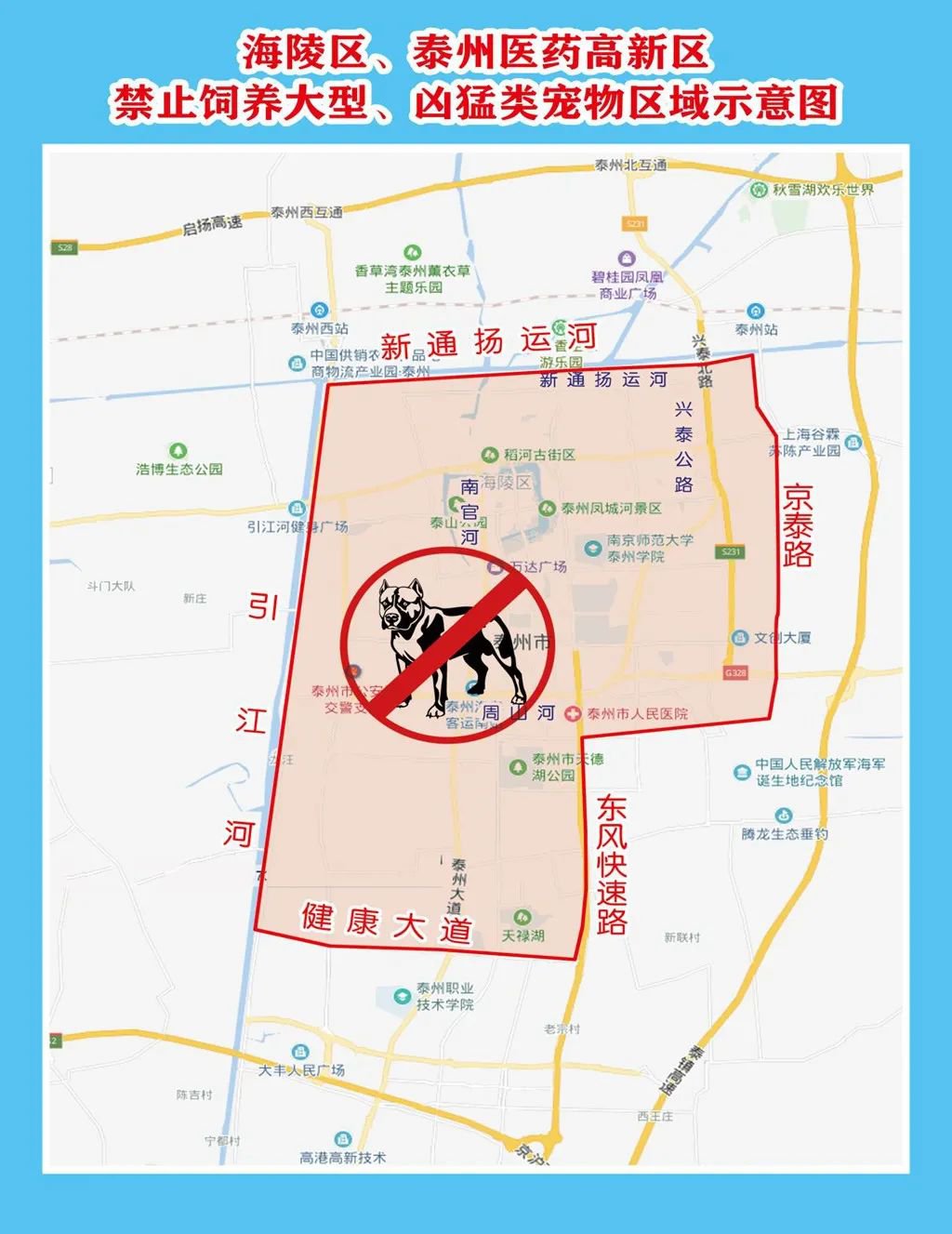 泰州市区大型、凶猛类宠物禁养区域规定(2021年3月1日起实施)