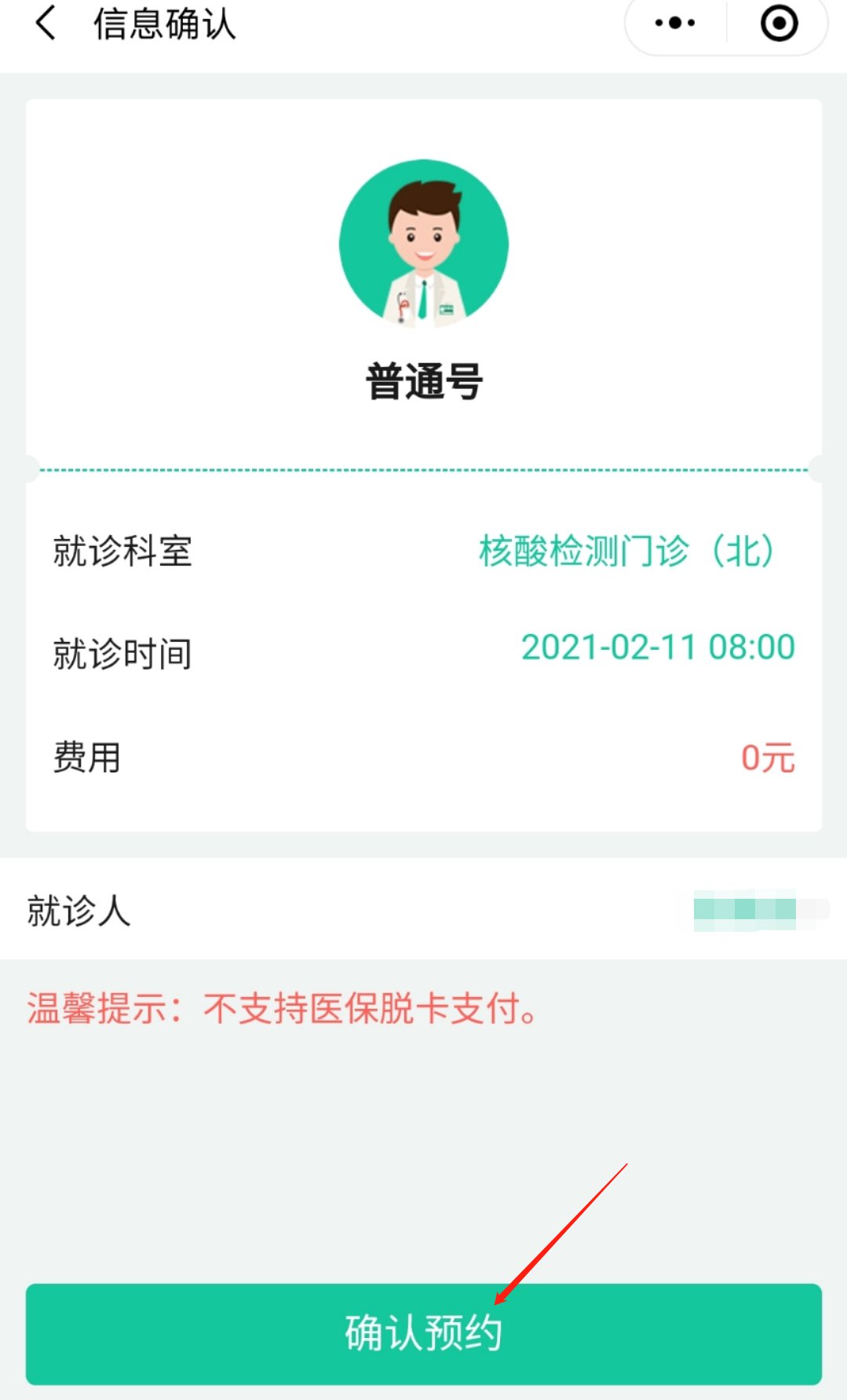 第二步:选择预约时间,填写个人信息,点击确认预约。