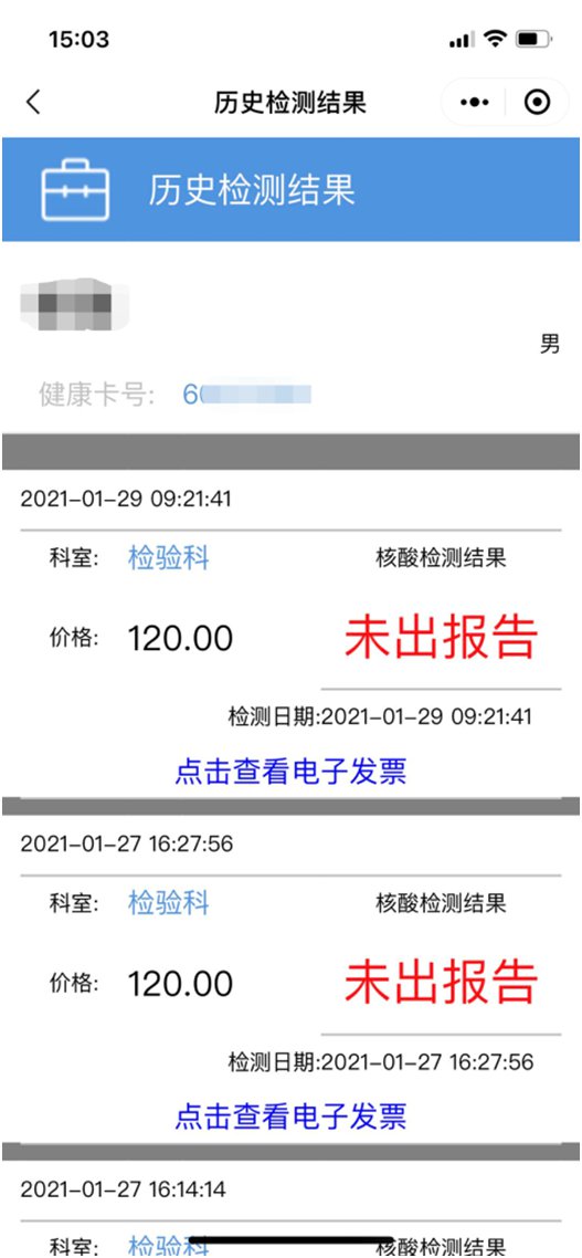 第七步:查询检测结果。【需要打印发票的患者可至门诊一楼大厅自助机扫码打印】
