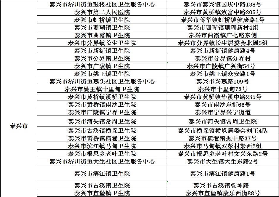 泰州市86家新冠疫苗接种单位公布(泰州 新冠疫苗)