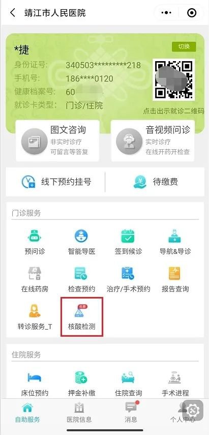1、点击“核酸检测”: