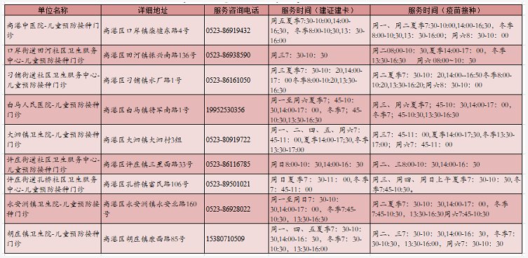 泰州高港HPV疫苗接种地址及联系方式: