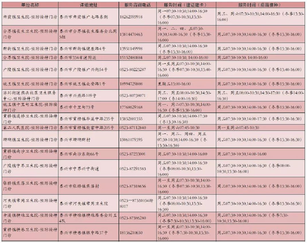 泰兴市部分社区卫生服务中心预约电话如下: