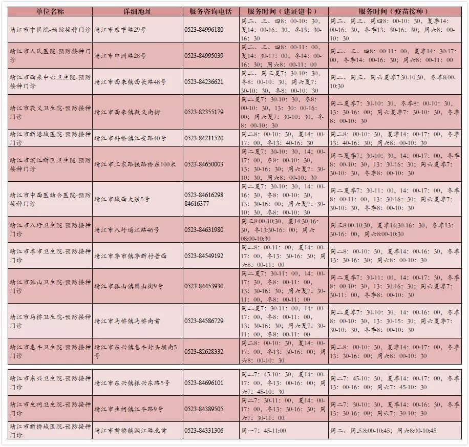靖江市流感疫苗预约接种电话及地址一览表: