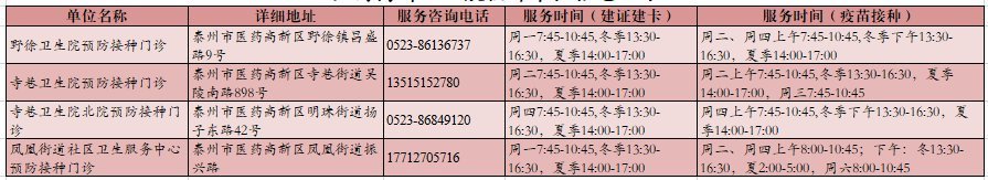 泰州医药高新区流感疫苗预约点: