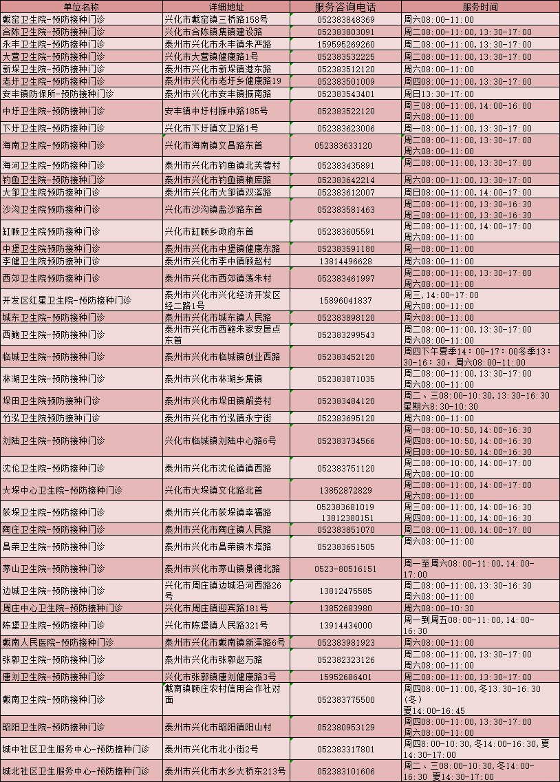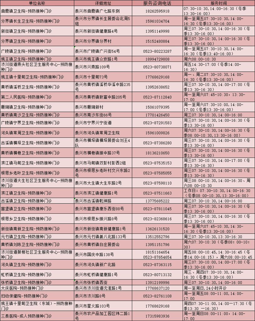 泰州各地社区卫生服务中心地址+联系方式: