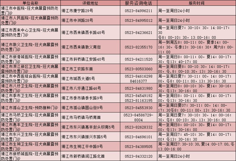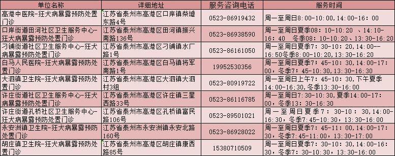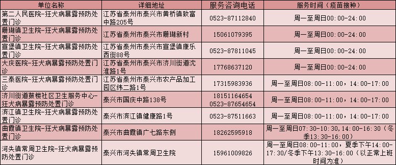 泰州市区狂犬病疫苗接种门诊(泰州市区狂犬病疫苗接种门诊地址)