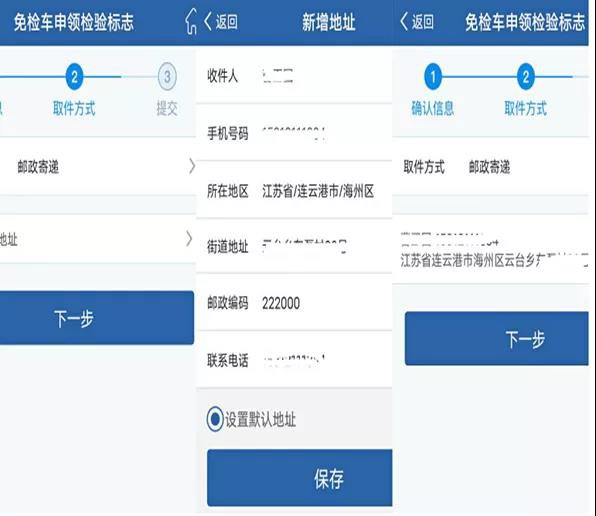 4、选择邮寄地址,进入下一步