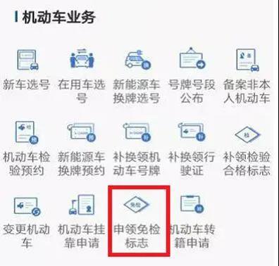 1、点击机动车业务-申领免检标志
