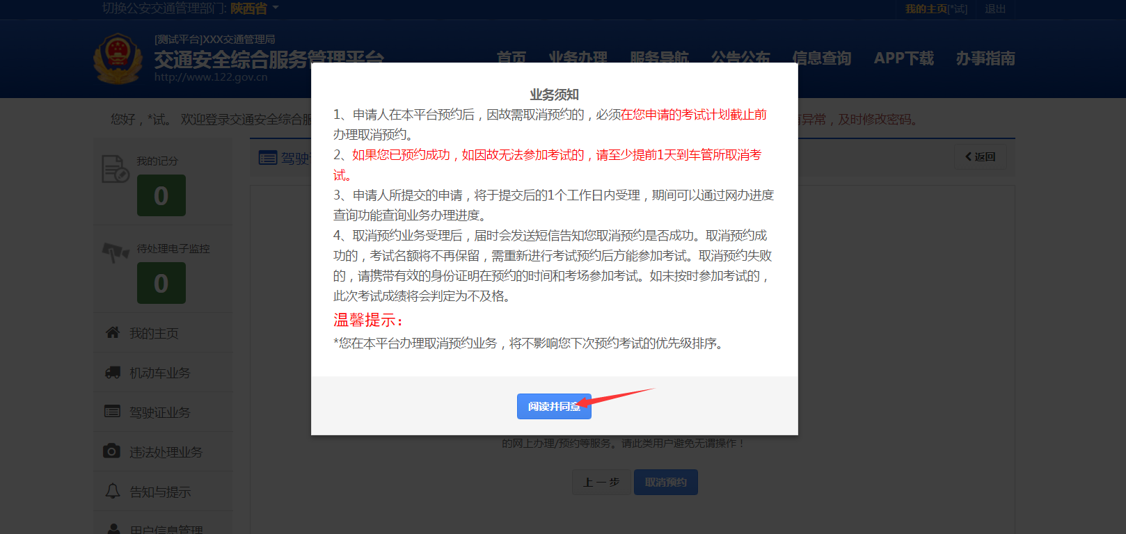 3、 用户在本平台办理取消预约业务,将不影响您下次预约考试的优先级排序。
