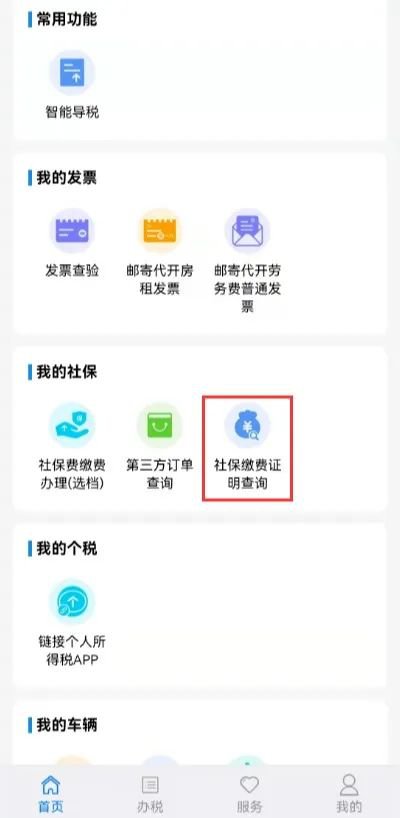 界面往下滑动,找到“我的社保”栏里的“社保缴费证明查询”点击打开。