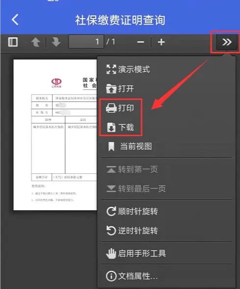 如下图,点击右上角“>>”图标,可选择对凭证下载或者直接打印(需要手机支持直接打印)。