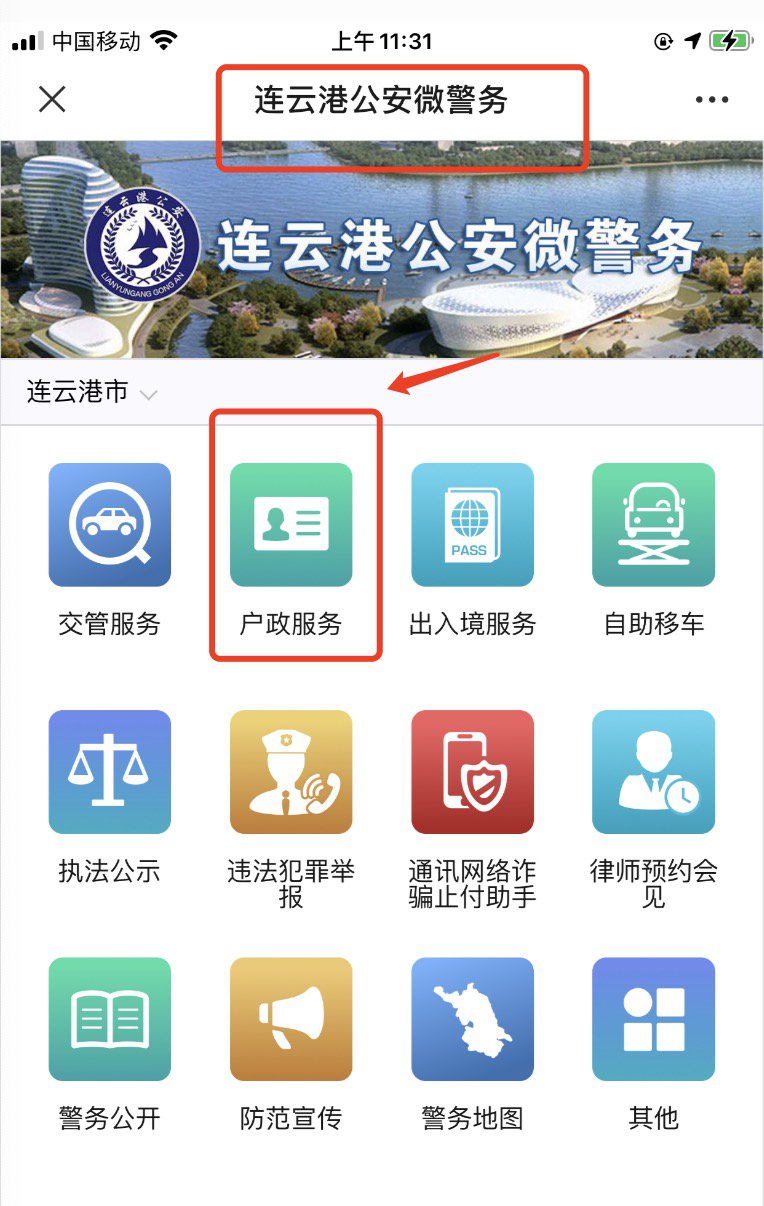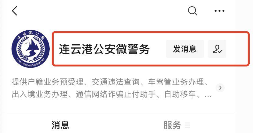 一、关注连云港公安微警务;