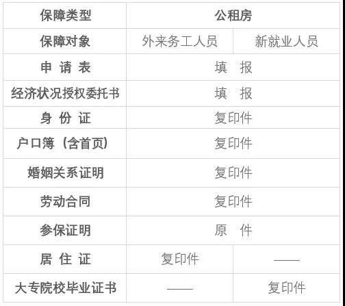 2、外来务工及新就业人员申请公租房所需资料