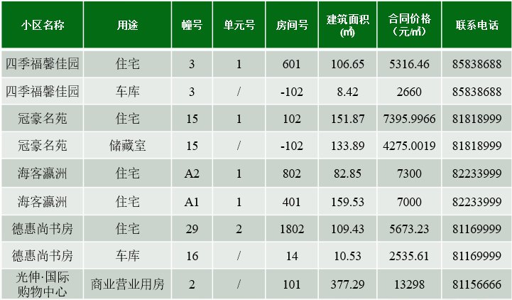 房源公示如下: