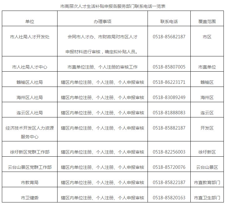附件:市高层次人才生活补贴申报各服务部门联系电话一览表
