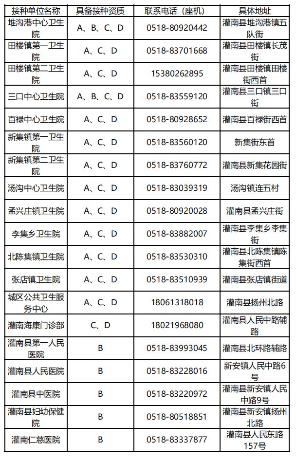 灌南县预防接种门诊汇总 灌南接种点