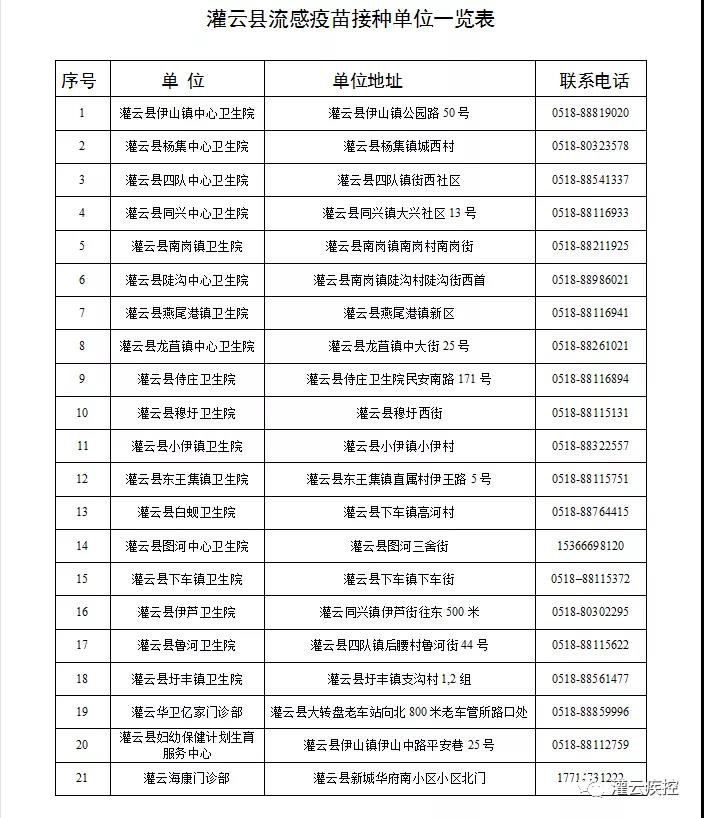 2021灌云县流感疫苗接种单位公示 2021灌云疫情最新消息