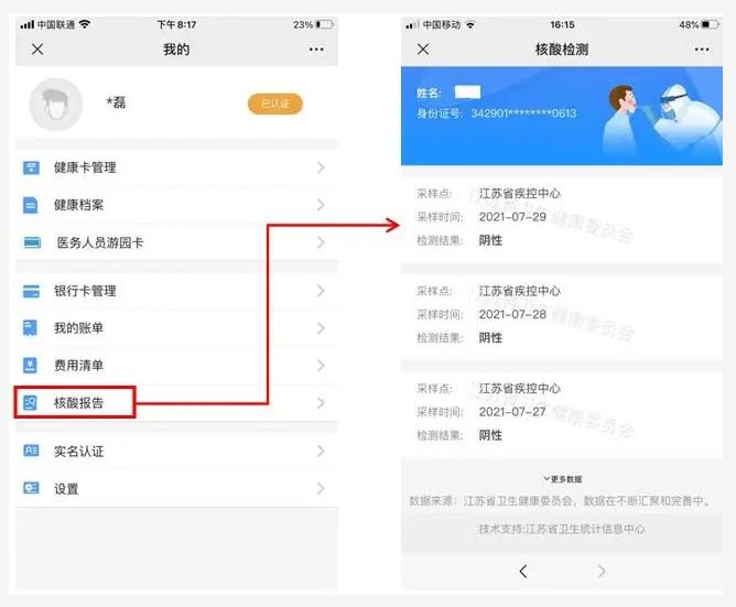江苏省内新冠肺炎核酸检测信息结果查询方法
