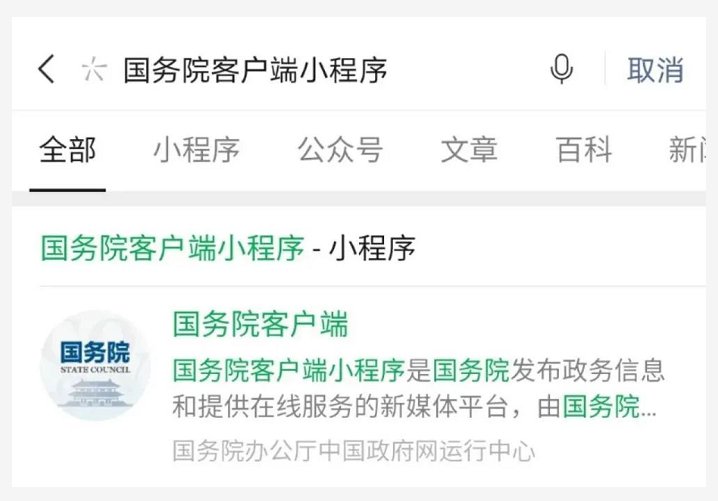 或者你可以微信直接搜索“国务院客户端”小程序具体方法如下: