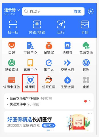 (1)打开“支付宝”APP,点击“健康码”;