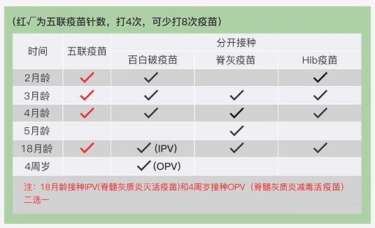 同一种疫苗如果有联合疫苗,尽量选择联合疫苗。打1针相当于打了3针疫苗的效果,而且还能减少接种剂次带来的疼痛和不良反应。