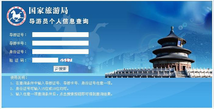 1、在查询条件中输入导游证号、导游卡号、身份证号任意一项。