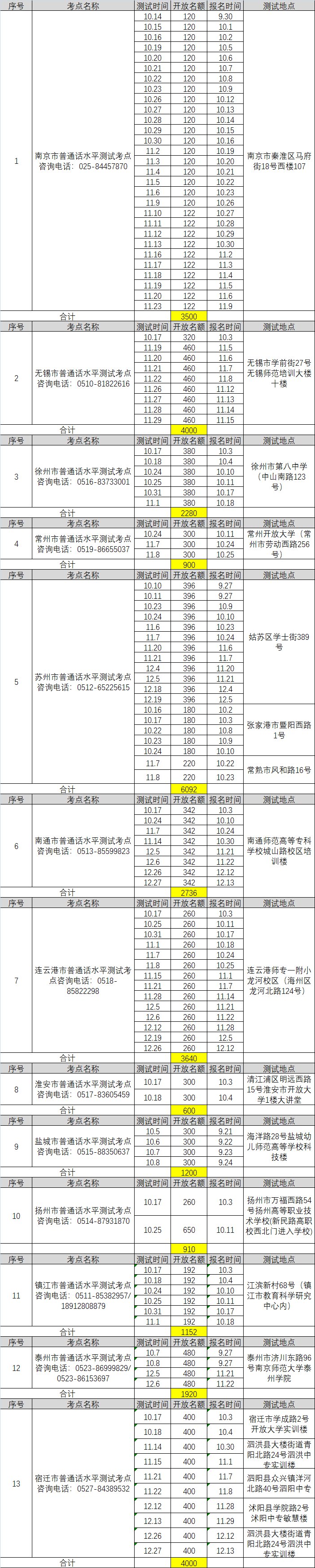 现将2020年下半年江苏省各设区市普通话水平测试考点面向社会人员测试要求及首批计划公布如下(注:报名时间从当日上午9:00开始,报满为止)。