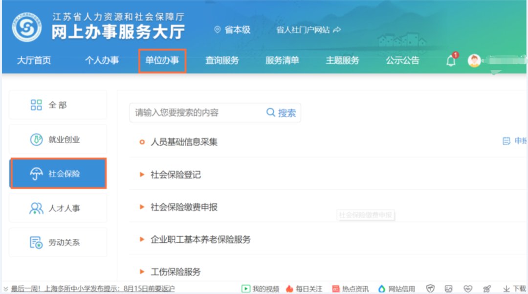 以参保单位为例,具体流程如下:
