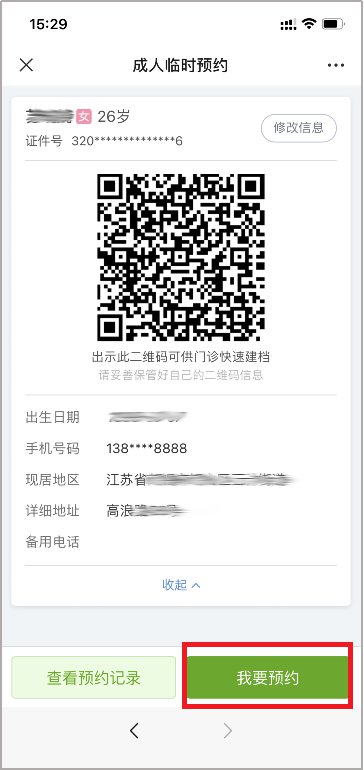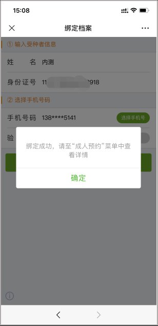 在成人档案列表中选择需要预约者姓名,选择“我要预约”——“确认预约”就完成了,去接种单位时,出示预约二维码扫码即可。