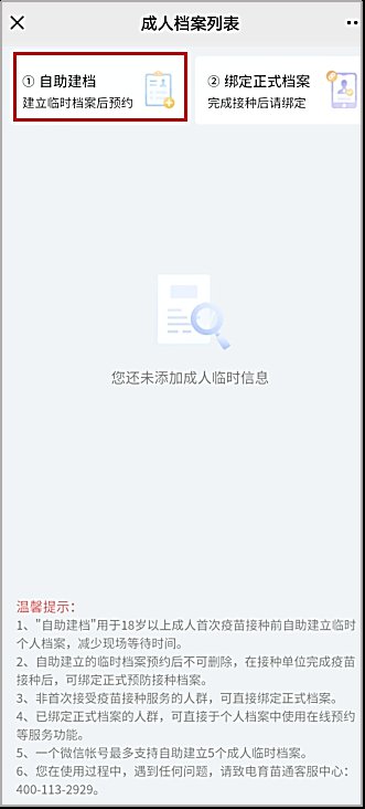 二、成人自助建档: