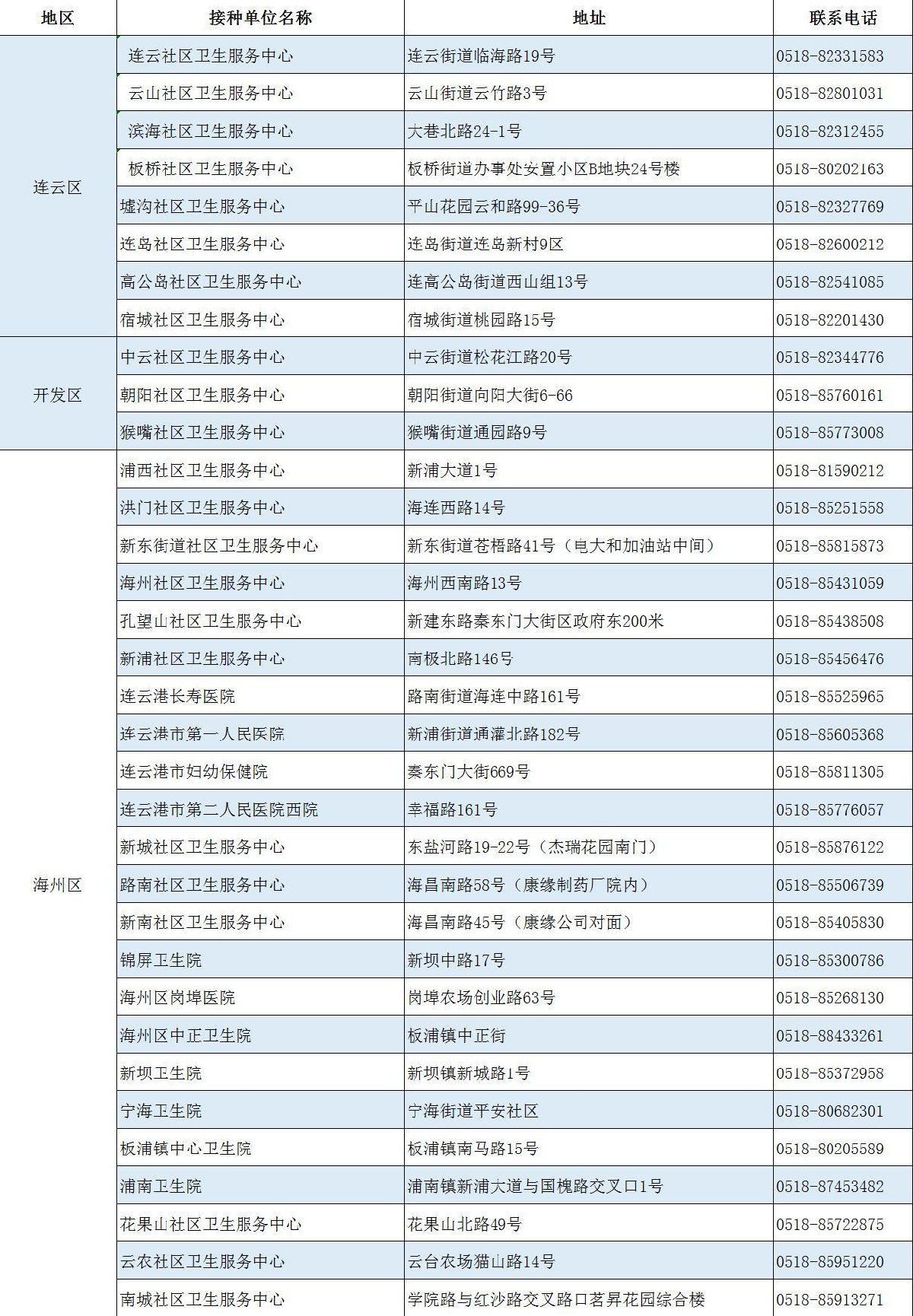 连云港疫苗接种最新地点2021 连云港连云区疫苗接种地点