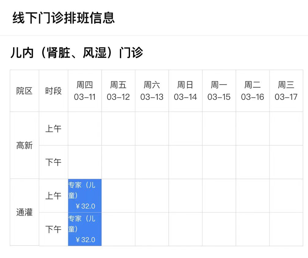 一、线下门诊排班信息
