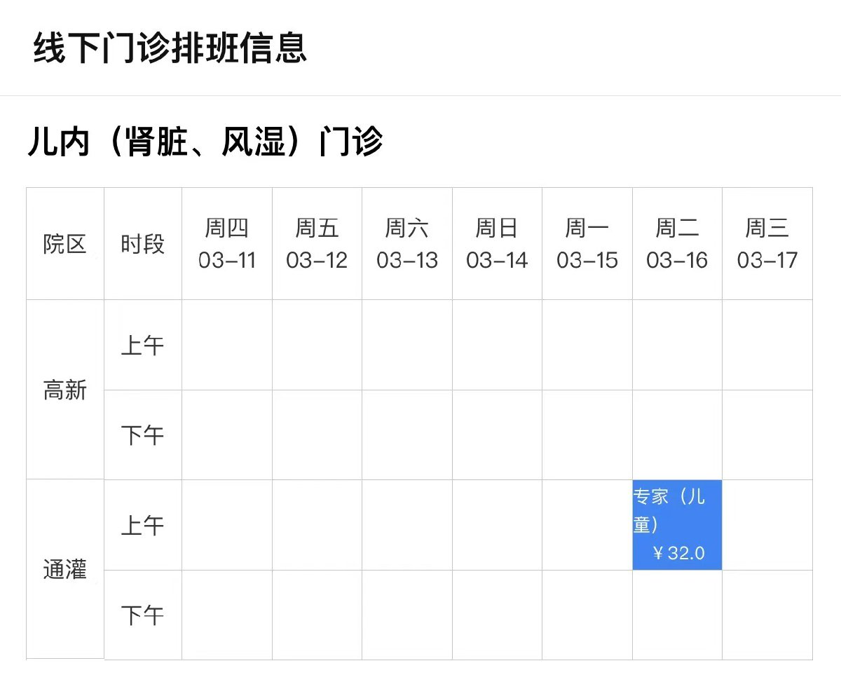 一、线下门诊排班信息