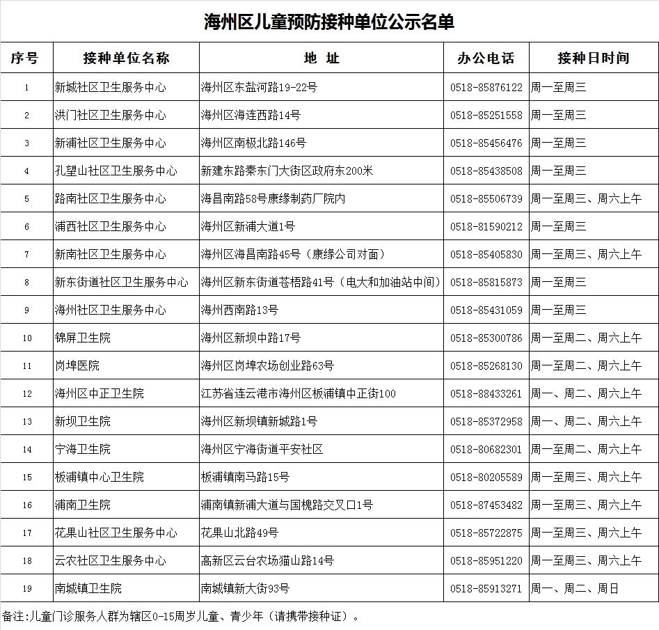 连云港儿童预防接种有哪些单位(连云港儿童预防接种有哪些单位负责)