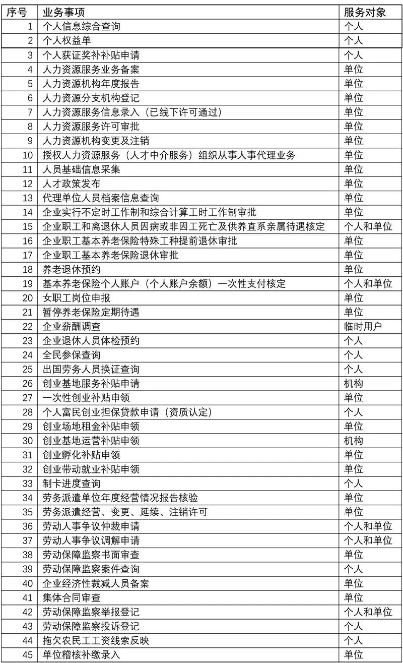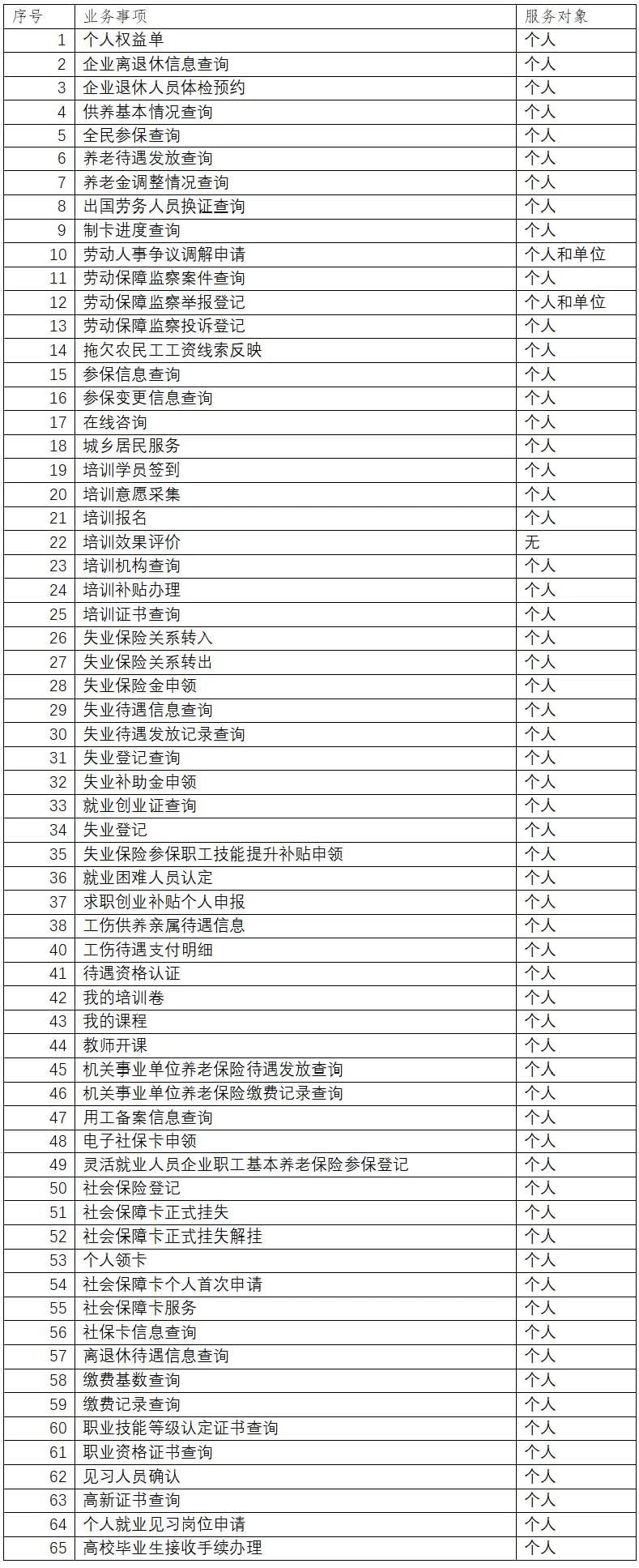 具体业务清单(65项)