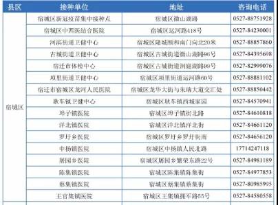 宿迁宿城一针剂疫苗接种点汇总