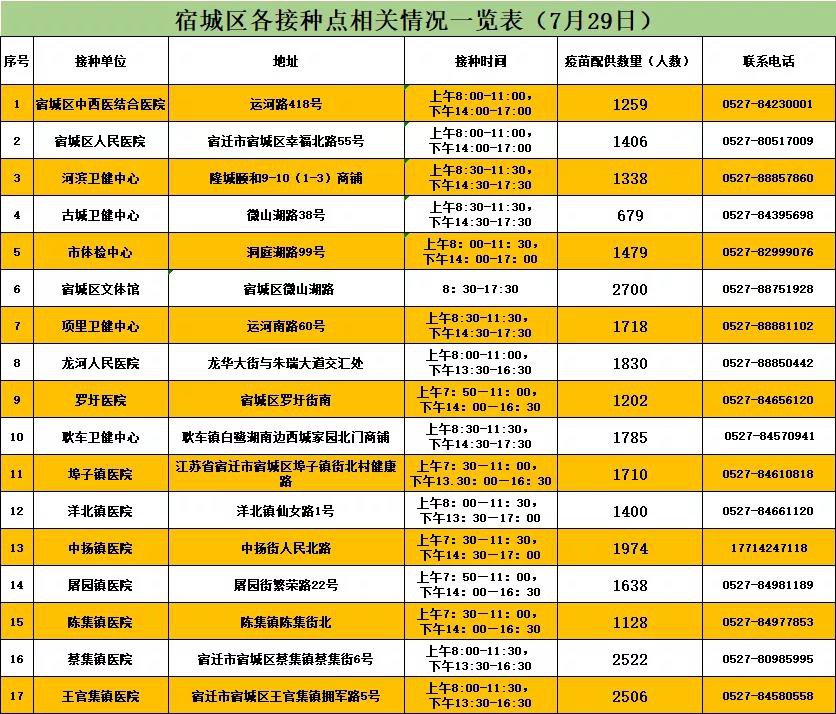 7月29日宿迁宿城区接种点一览