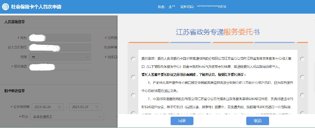 四、确认提交后,弹出江苏省政务专递服务委托书请仔细阅读。