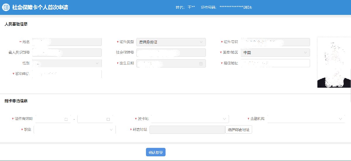 三、填写基本信息、邮寄地址后提交制卡申请。