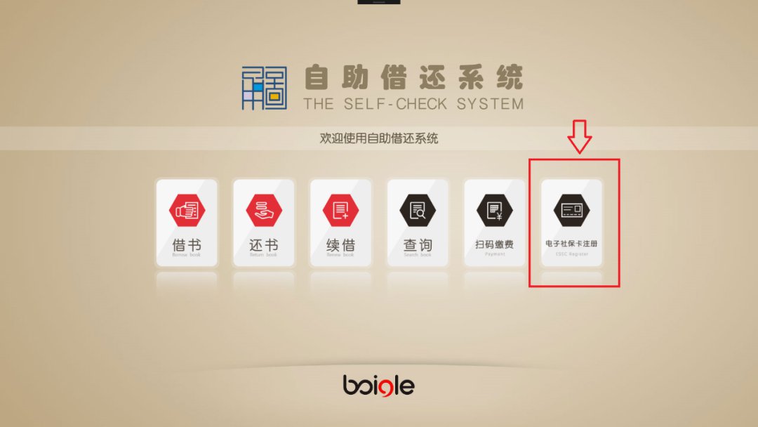 如果您之前未在市图书馆办理过读者证,可以在自助机上通过电子社保卡简单地走一个注册流程,以后借还书都可以用电子社保卡来实现。