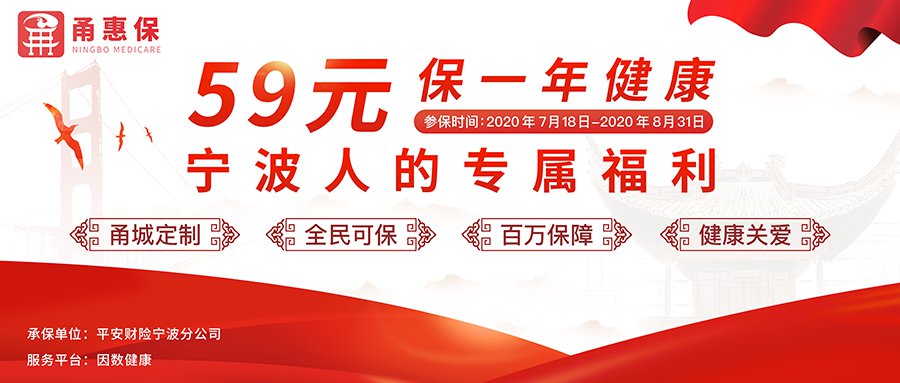 59元/人,保一年健康,最高100万元的商业补充医疗保险保障,不限年龄、不限户籍、不限职业、不限身体健康状况,宁波市社会基本医疗保险参保人均可以购买!
