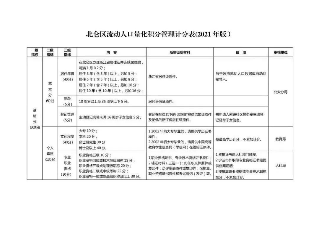 2021年北仑区量化积分计分标准(北仑量化积分哪里开通)