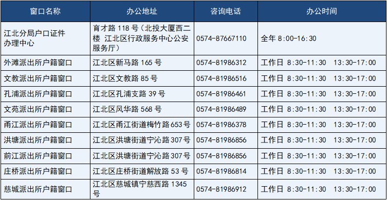 江北区户籍窗口办公地址及咨询电话