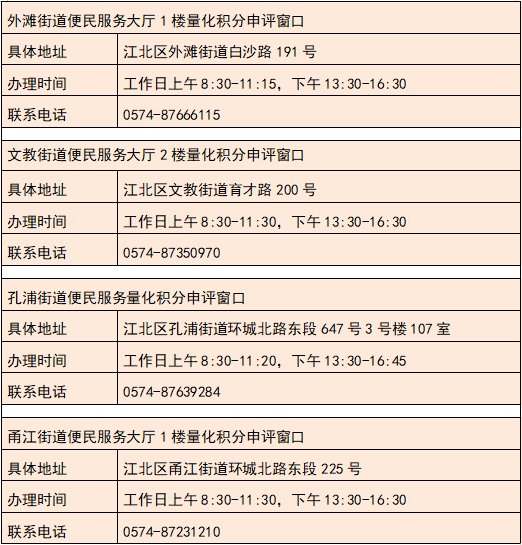 江北区流动人口量化积分窗口办公地址及咨询电话