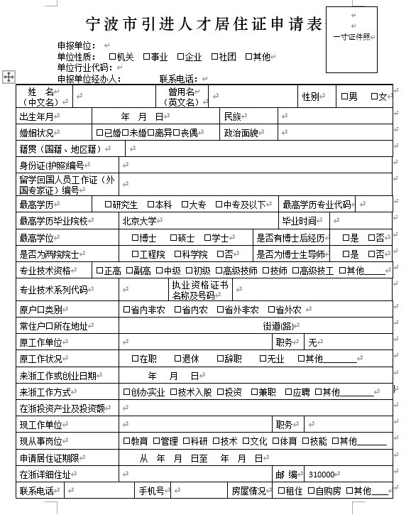 宁波引进人才居住证申请表下载(宁波引进人才居住证申请表下载打印)
