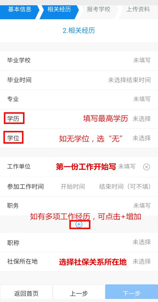 2.参加工作时间为系统判定工作年限的依据,请务必填写第一份工作的开始时间。