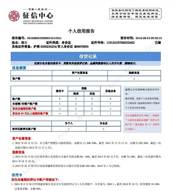 提交成功后,页面展示查询结果。(个人信用报告查询结果展示样例如下)